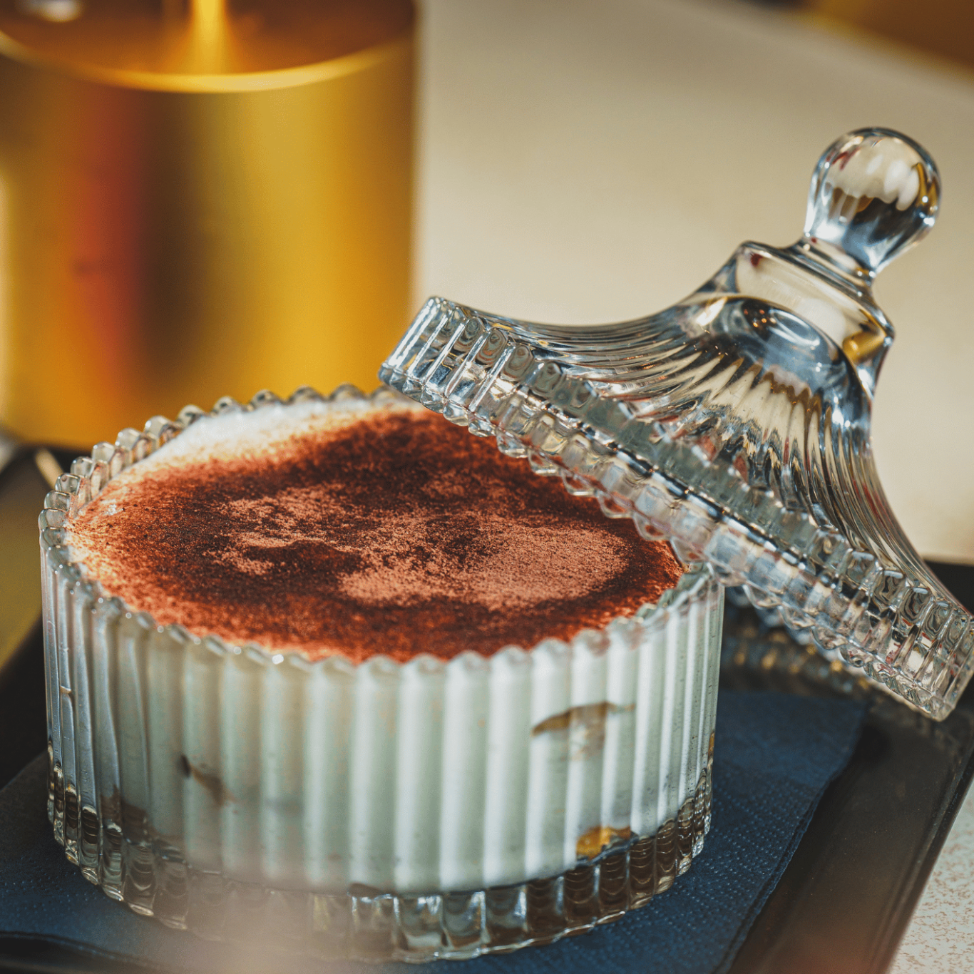 Cremiges, frisch zubereitetes Tiramisu – liebevoll im edlen Glas serviert. Zart, aromatisch und der perfekte Abschluss eines Mythos-Menüs.