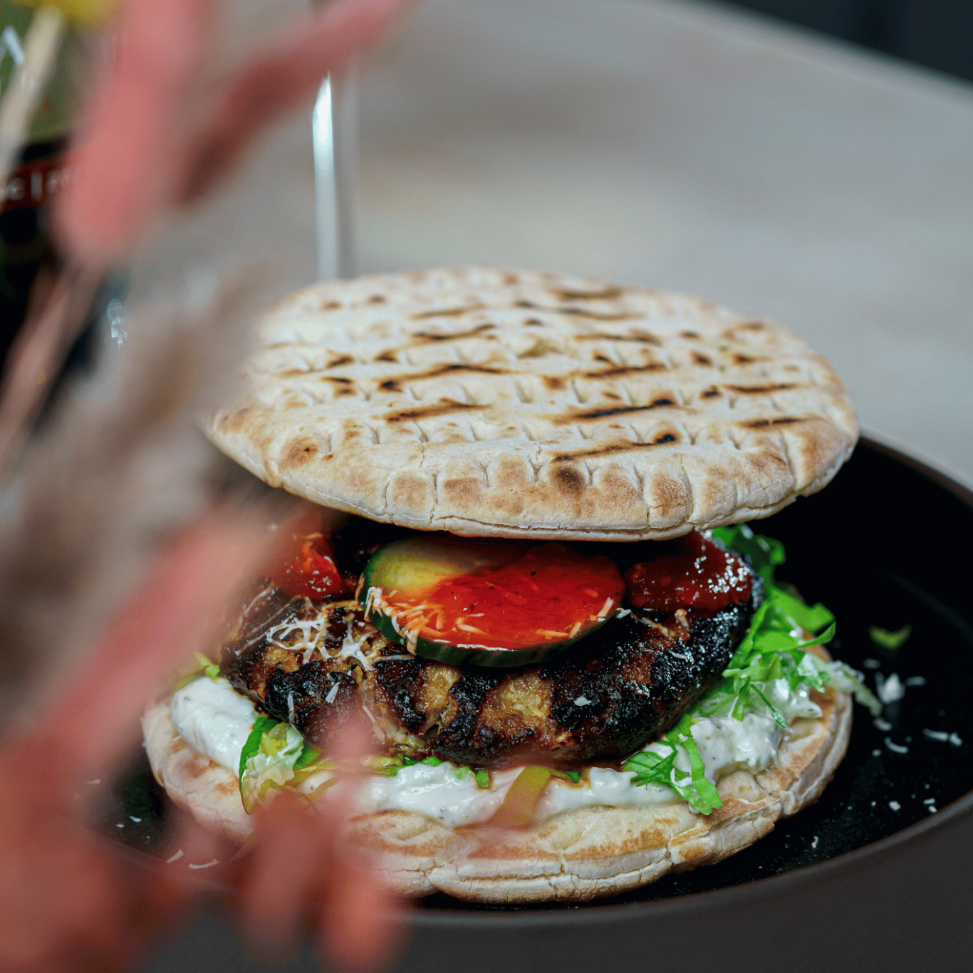 Saftiges Hacksteak, cremiges Zaziki, frische Tomaten, Gurken und Zwiebeln – veredelt mit hausgemachter Paprikasauce und geriebenem Käse. Serviert im gerösteten Pita-Bun. Ein Burger, der nach Griechenland schmeckt.